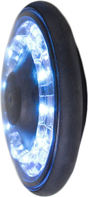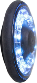 Die Wifi Disk leuchtet andersdfarbig, wenn sie geladen wird und piepst. Außerdem hat sie schwarze Schrauben, die Sie sehen, wenn Sie den Gummischutz entfernen.
